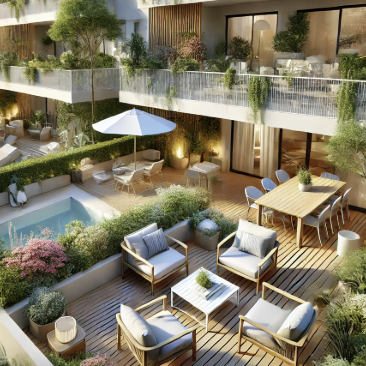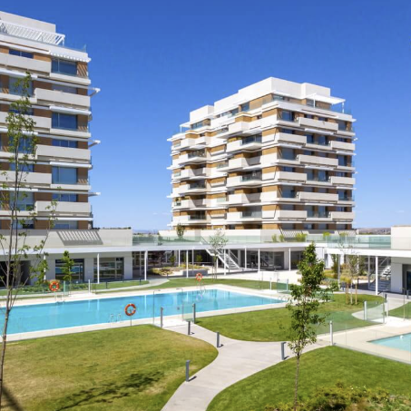 Jardín de uso intensivo en sus praderas no solo en verano para la estancia en la piscina sino durante las demás épocas del año, los usuarios más pequeños disfrutan transitando y con sus juegos por los espacios que mantenemos.
